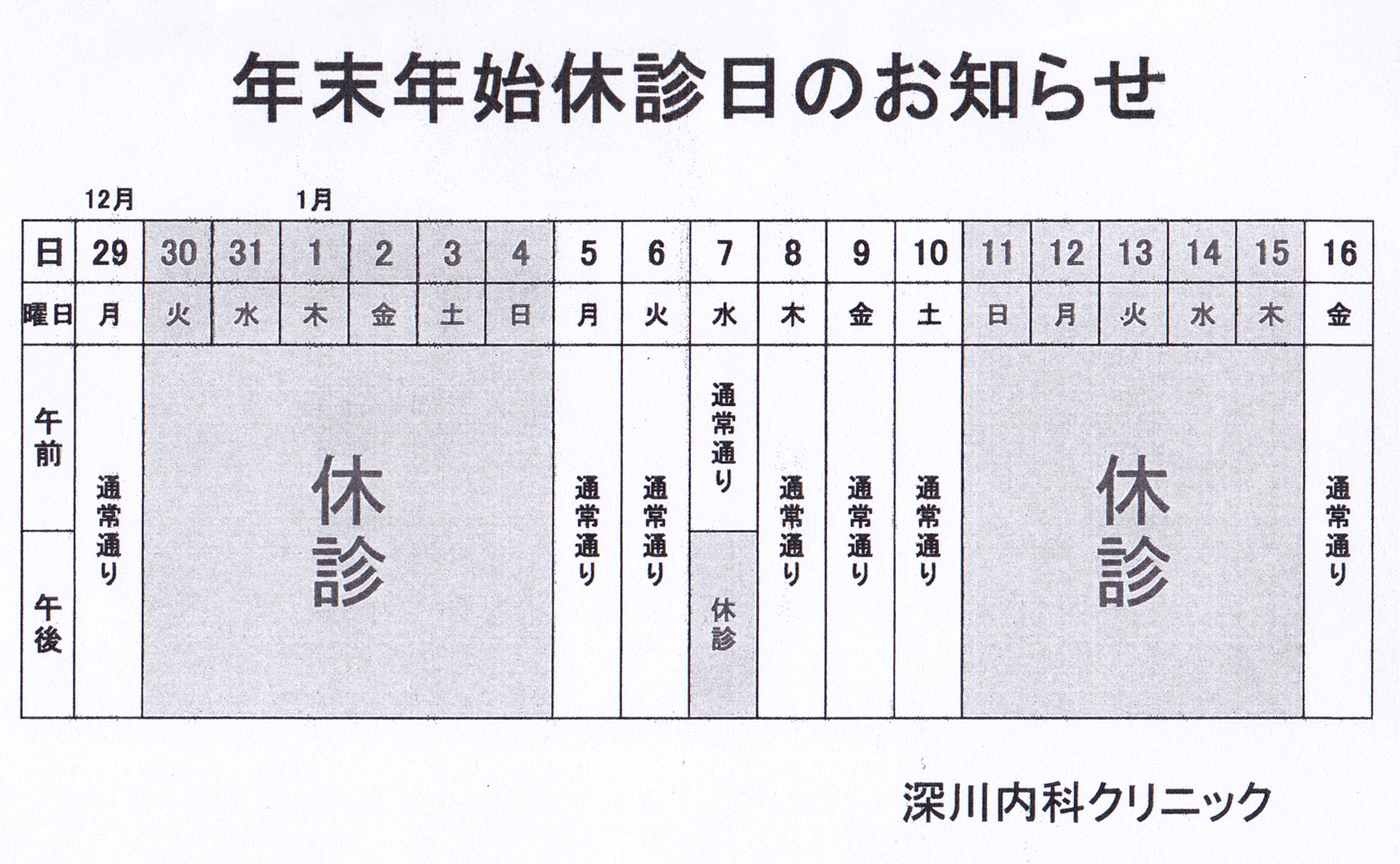 …というわけで、少し早めに年末年始の休診日のお知らせをいたします。