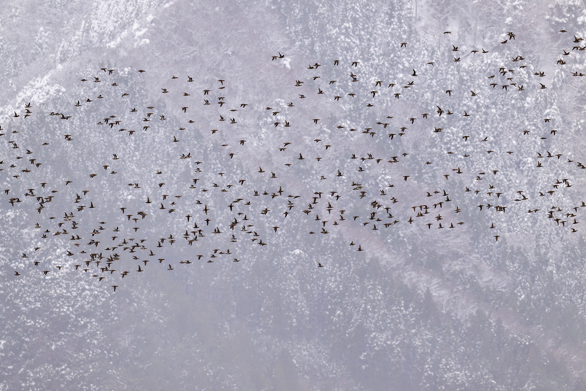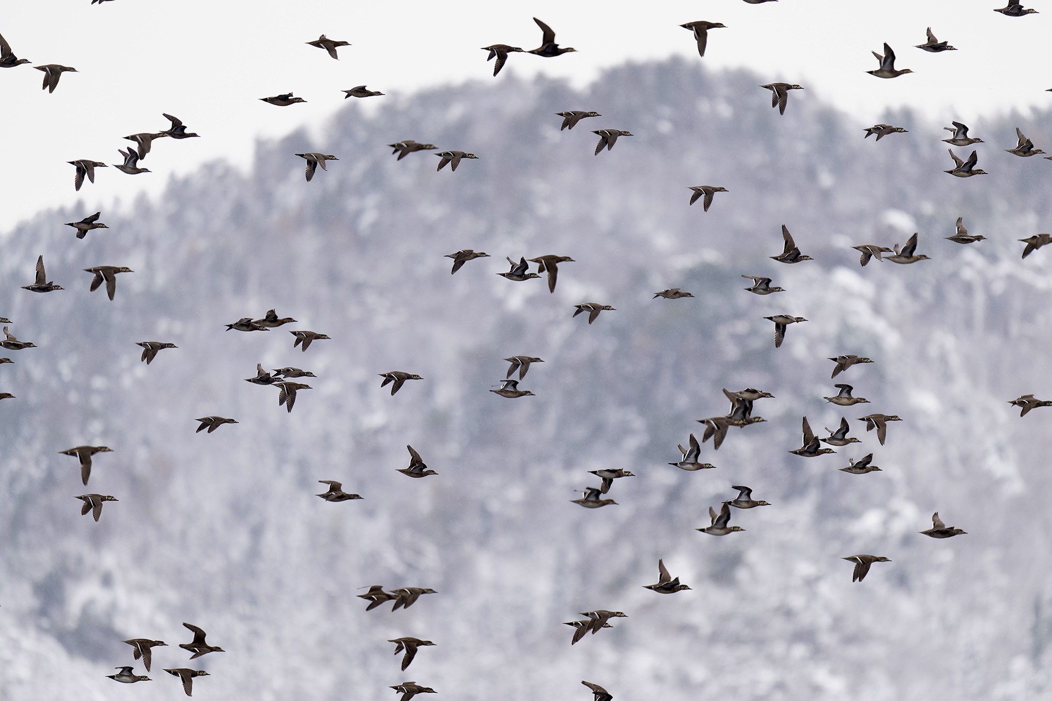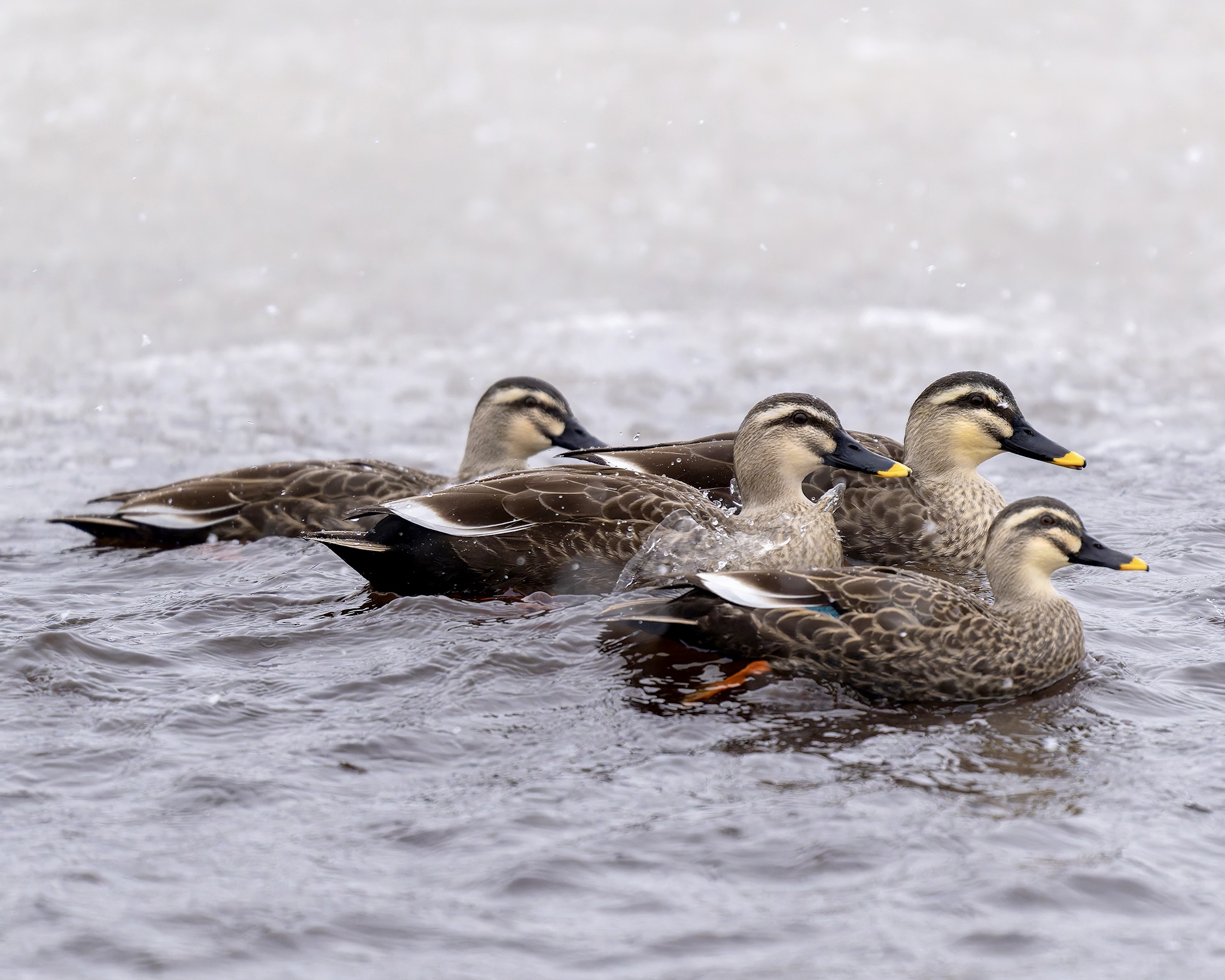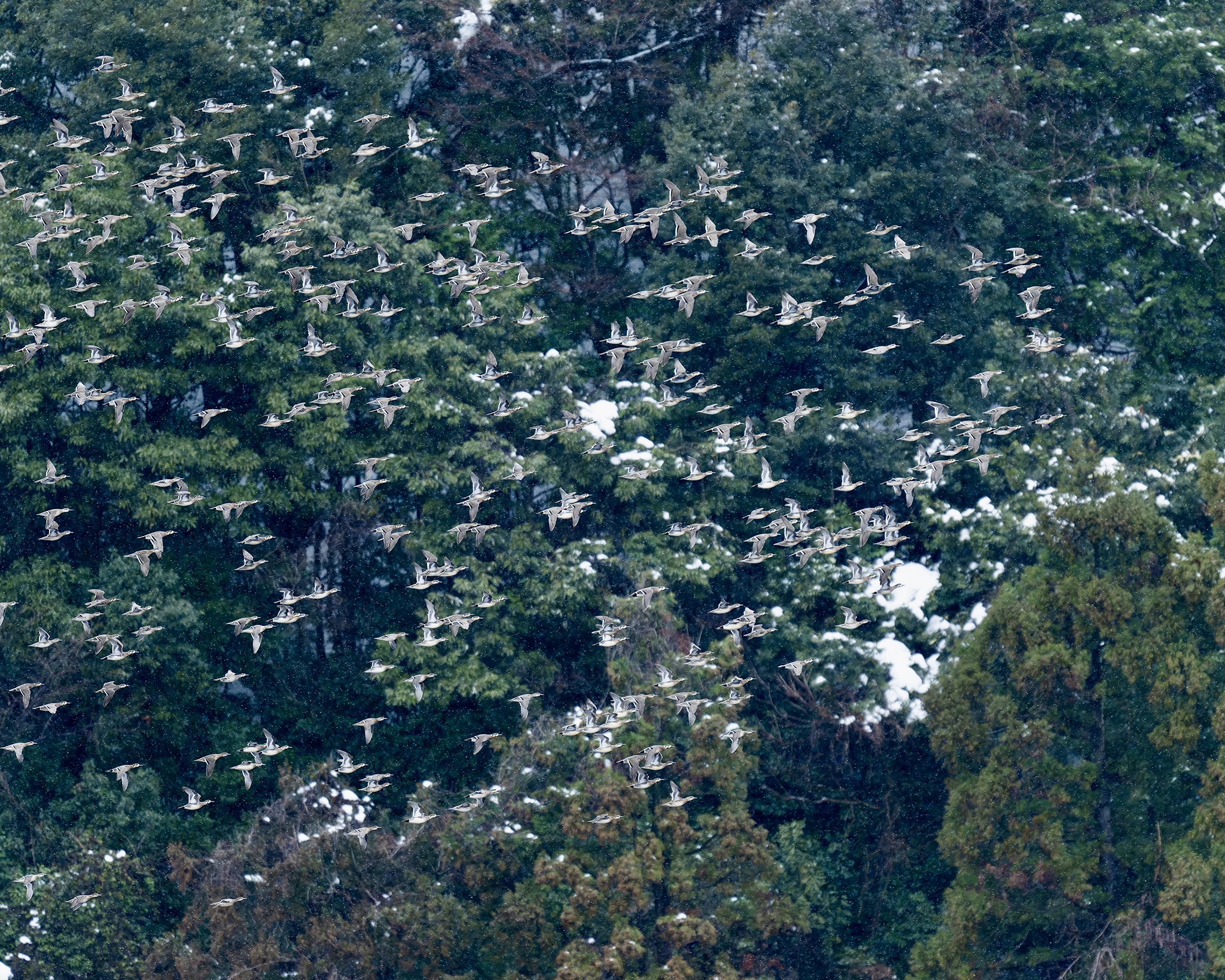 トモエガモの集団