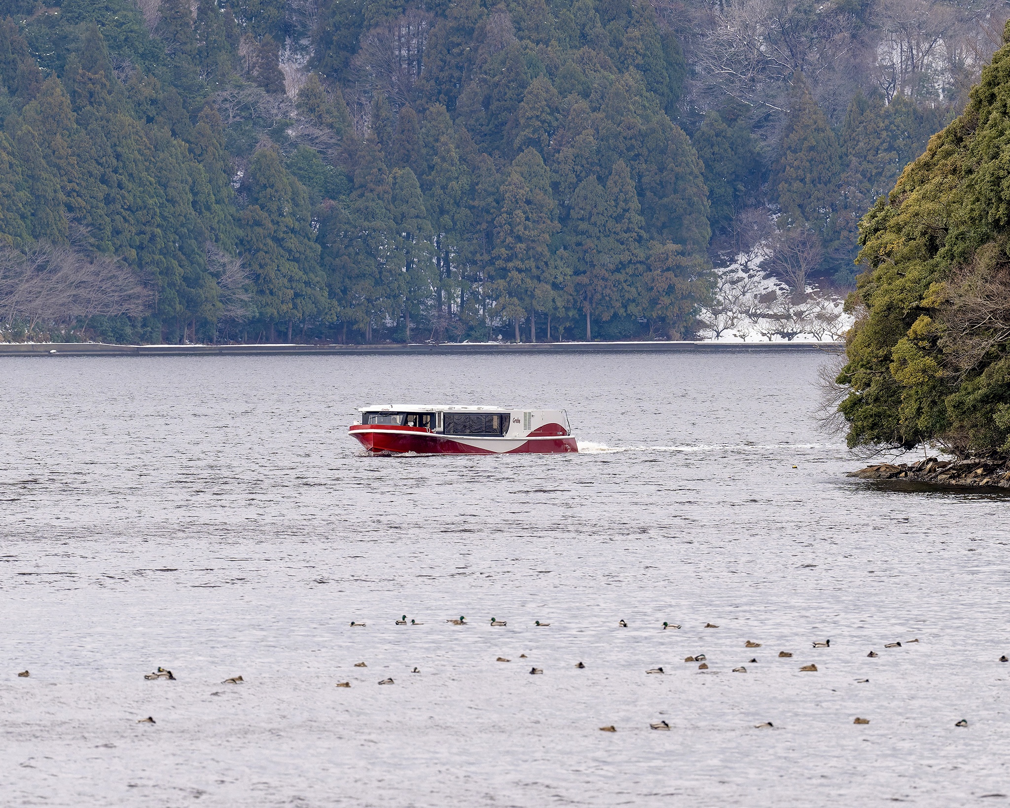 福井県美浜町のネイチャークルーズの船に乗り、三方五湖(みかたごこ)に飛来した冬鳥を撮りました。