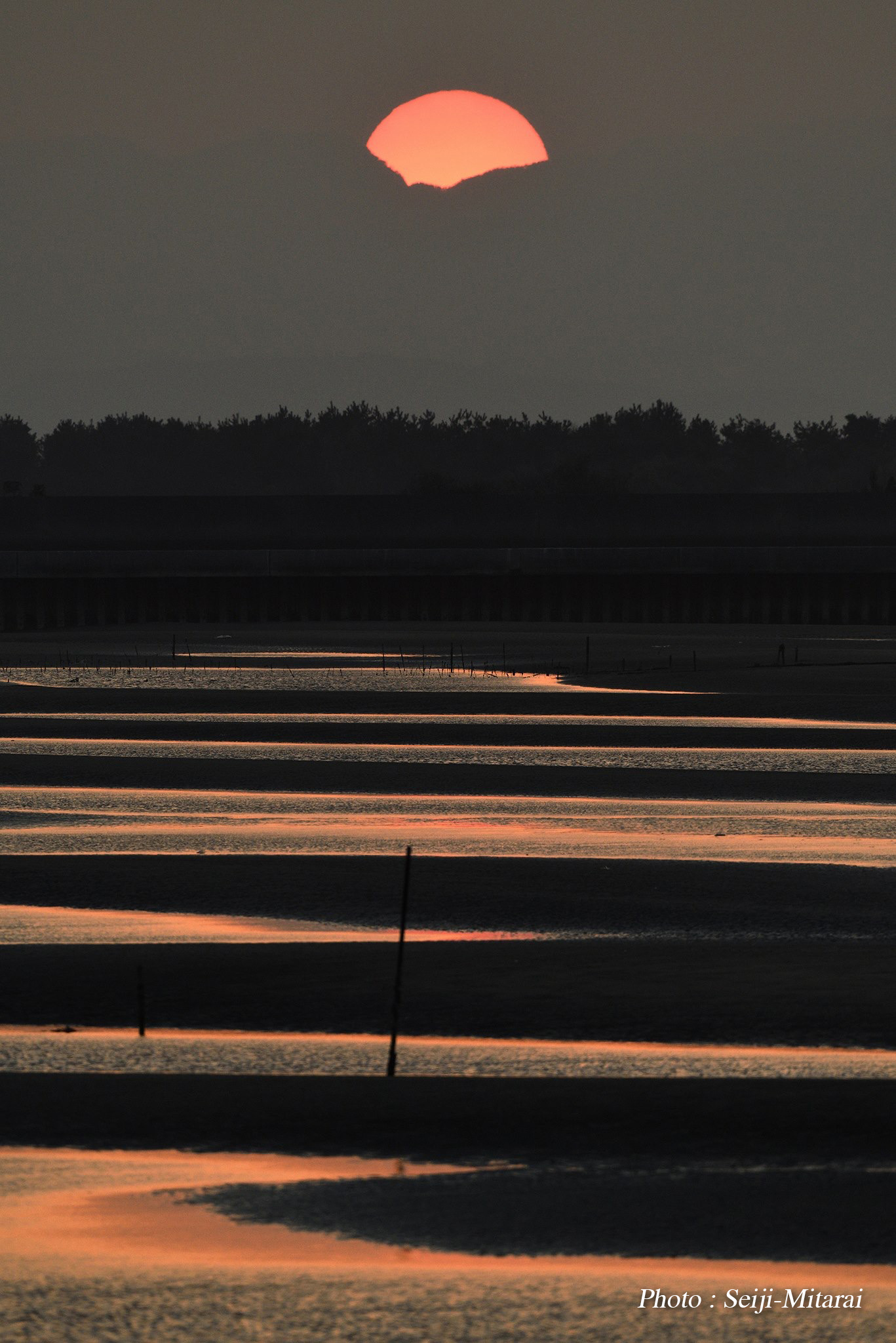 お勧めは夕方が干潮で小潮と中潮の時です。大潮の干潮時は海水が引きすぎて遠浅になってしまい、また満潮の時は干潟が見えませんのでご注意を(^^;