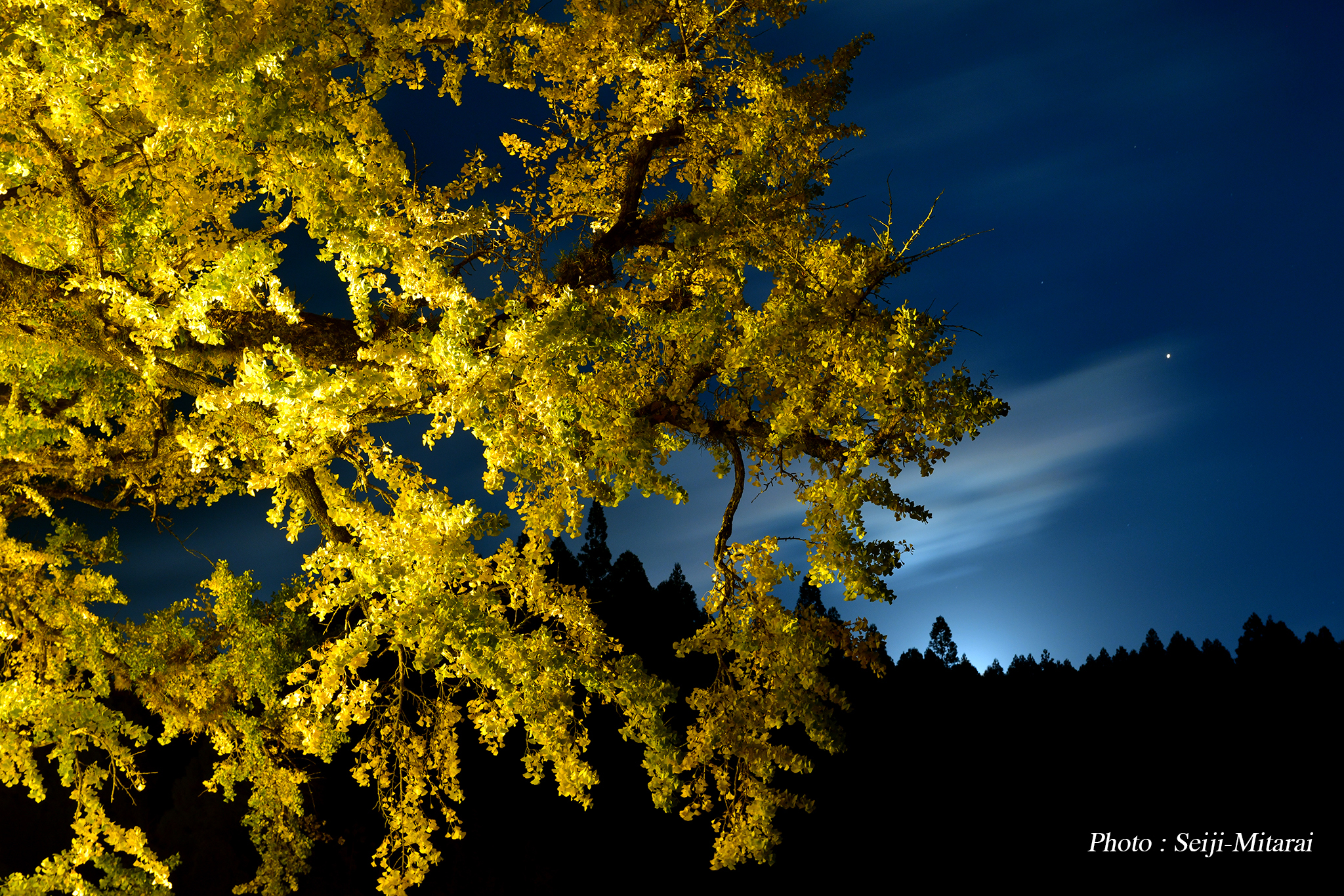樹齢は1000年を越え、国の天然記念物に指定されている熊本県小国町下城の大イチョウ。